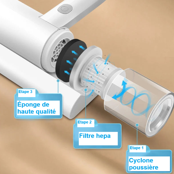 Profitez de la praticité ultime avec notre aspirateur polyvalent offrant une fonction 3-en-1. Grâce à sa capacité de tapotement puissant, d'aspiration efficace et de pénétration de lumière violette, nettoyer en profondeur n'a jamais été aussi simple.